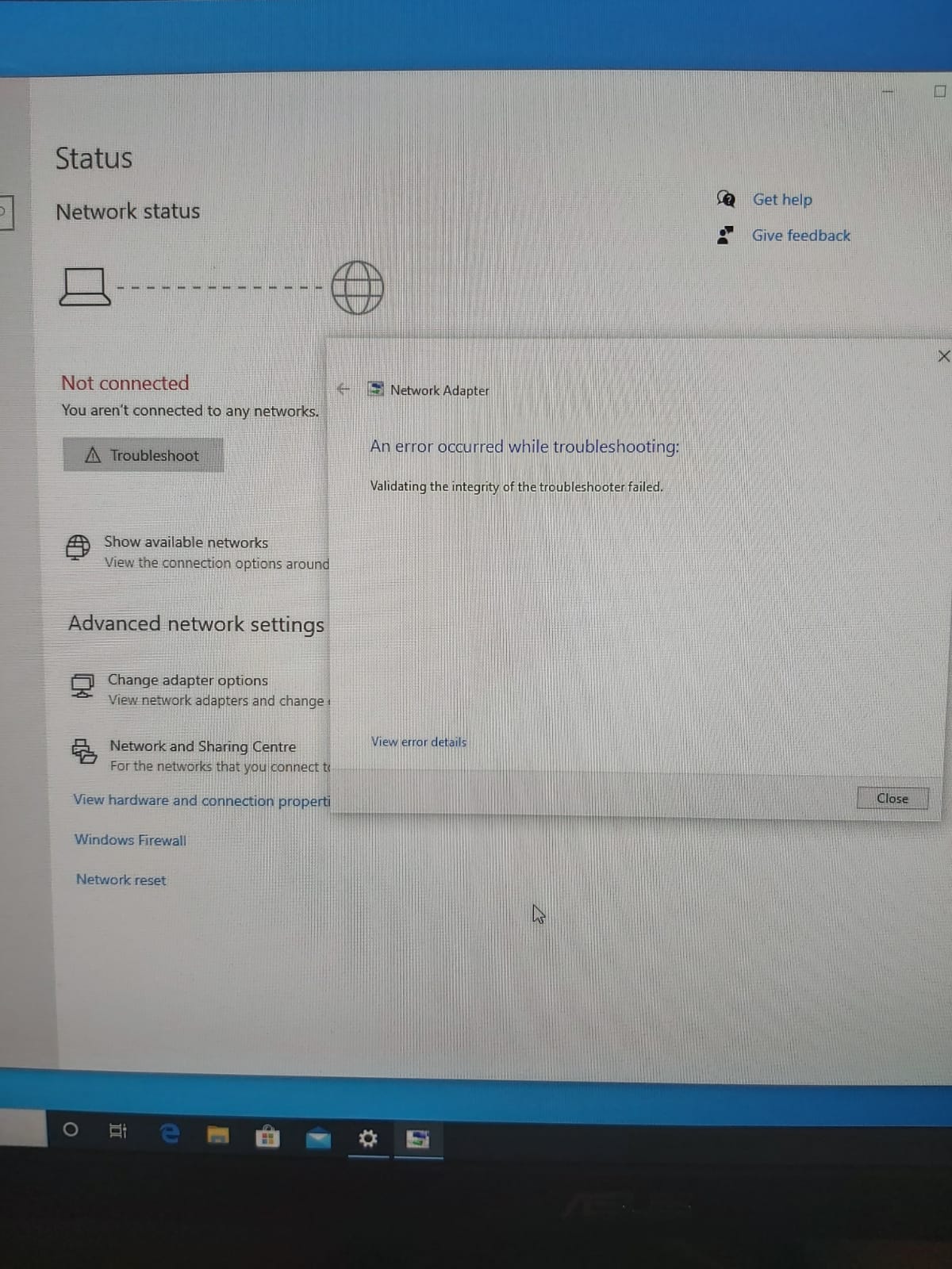 Does the network adapter appear in the "Change adapter options" menu? |